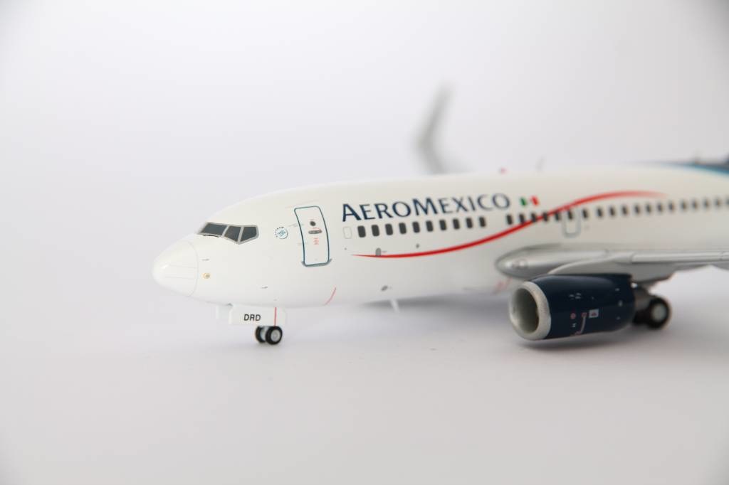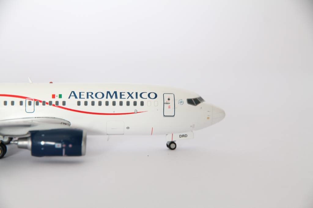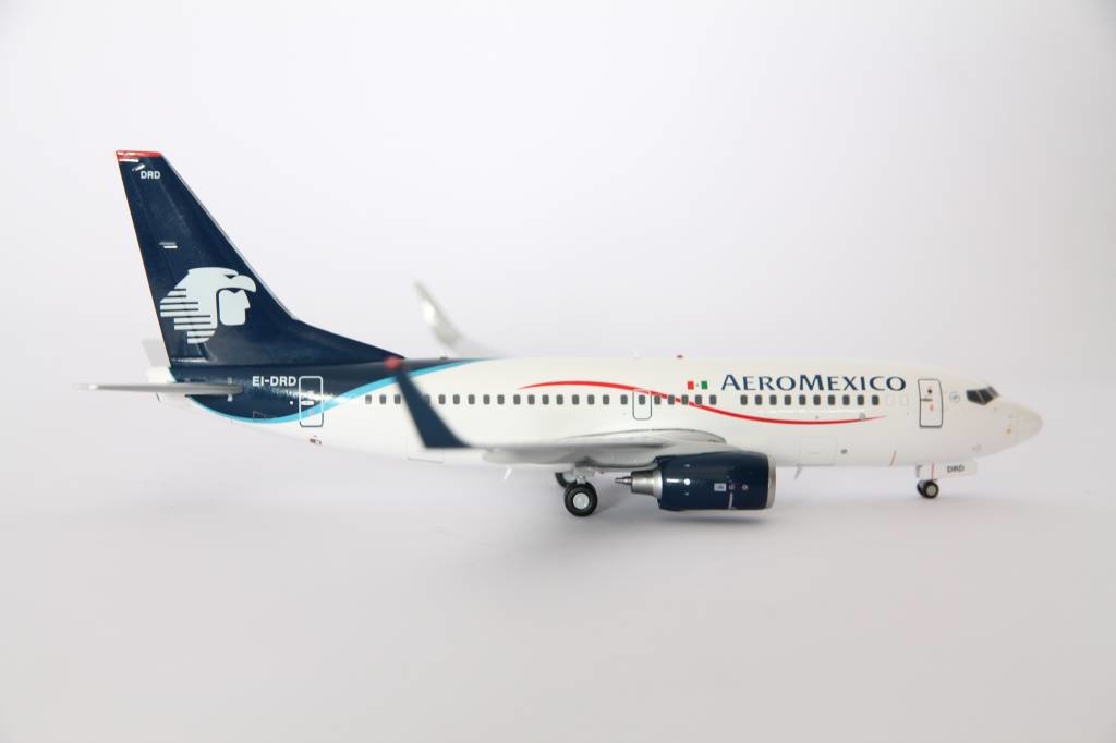 AeroMexico Boeing 737-700 with registration EI-DRD. Model can be displayed gear-up and down. Contains antennas, steerable nose gear, rolling gears, rubber tyres and "jeweled" beacons.