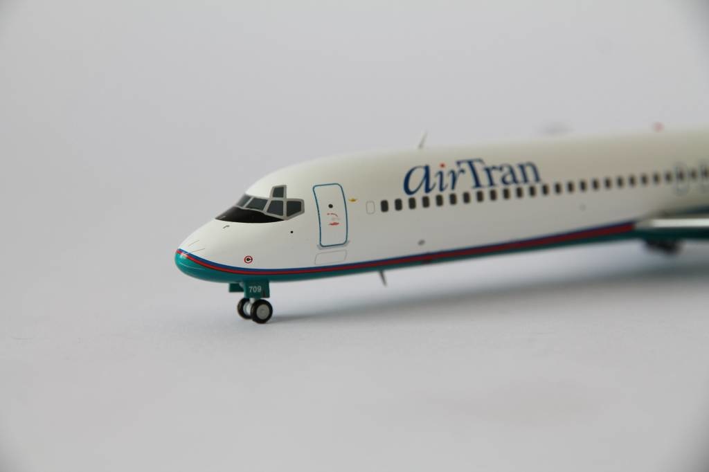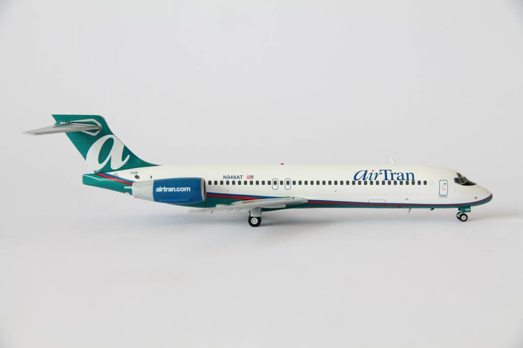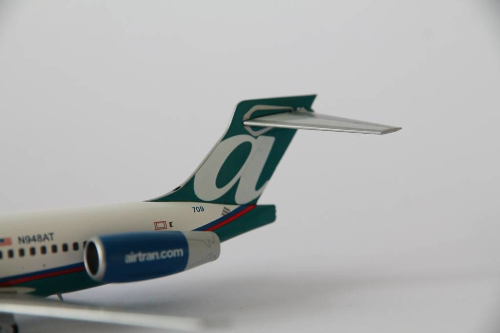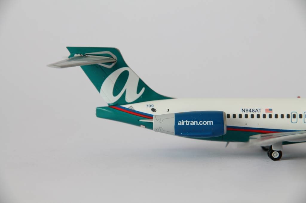 Air Tran Boeing 717-200 with registration N948AT. Contains antennas, steerable nose gear, rolling gears, rubber tyres and "jeweled" beacons.
