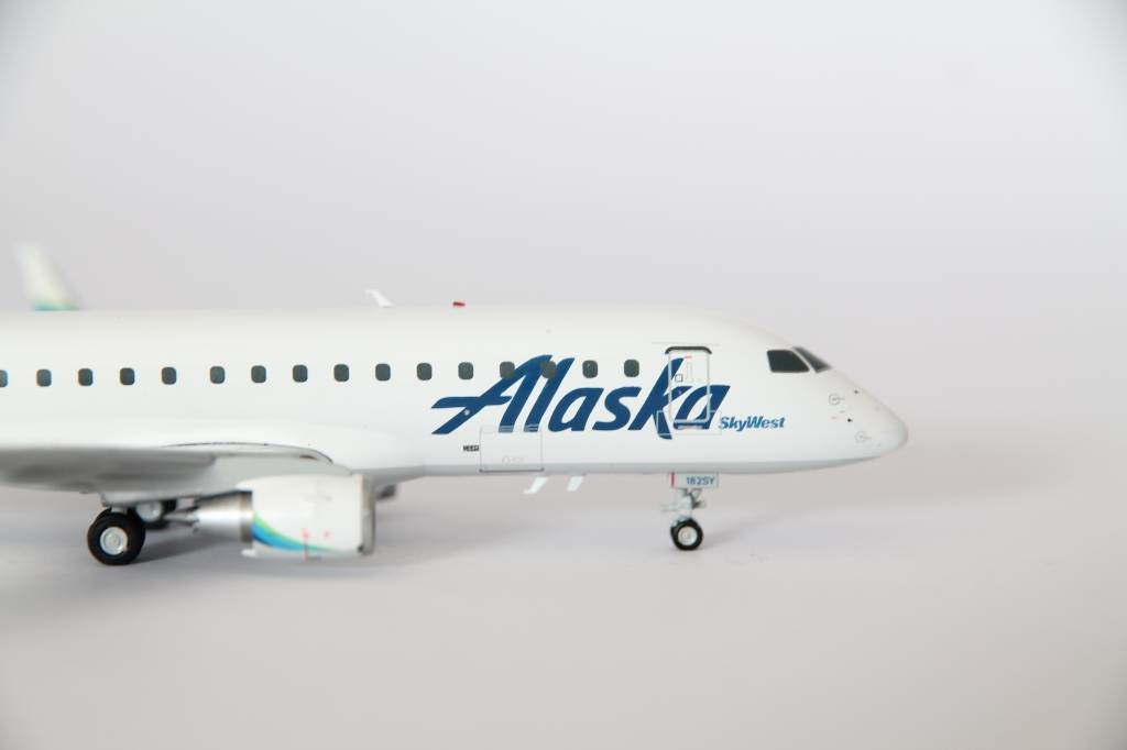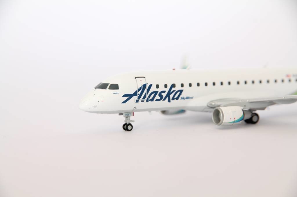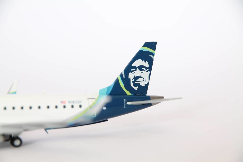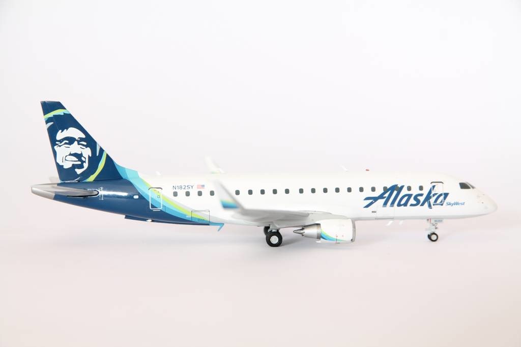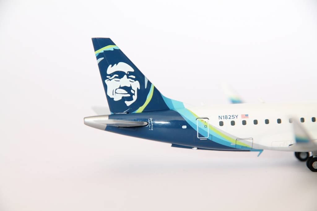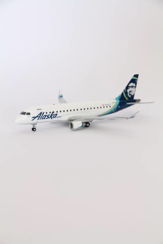 Alaska Airlines Embraer ERJ-175. with registration N182SY. Model can be displayed gear-up and down. Contains antennas, steerable nose gear, rolling gears, rubber tyres and "jeweled" beacons.