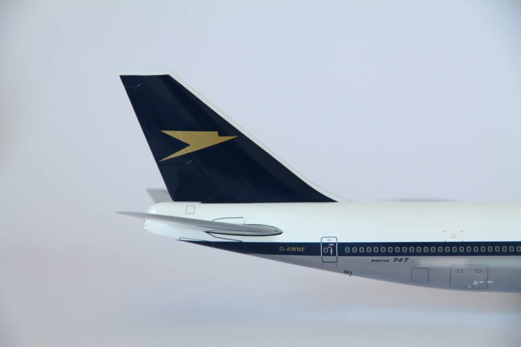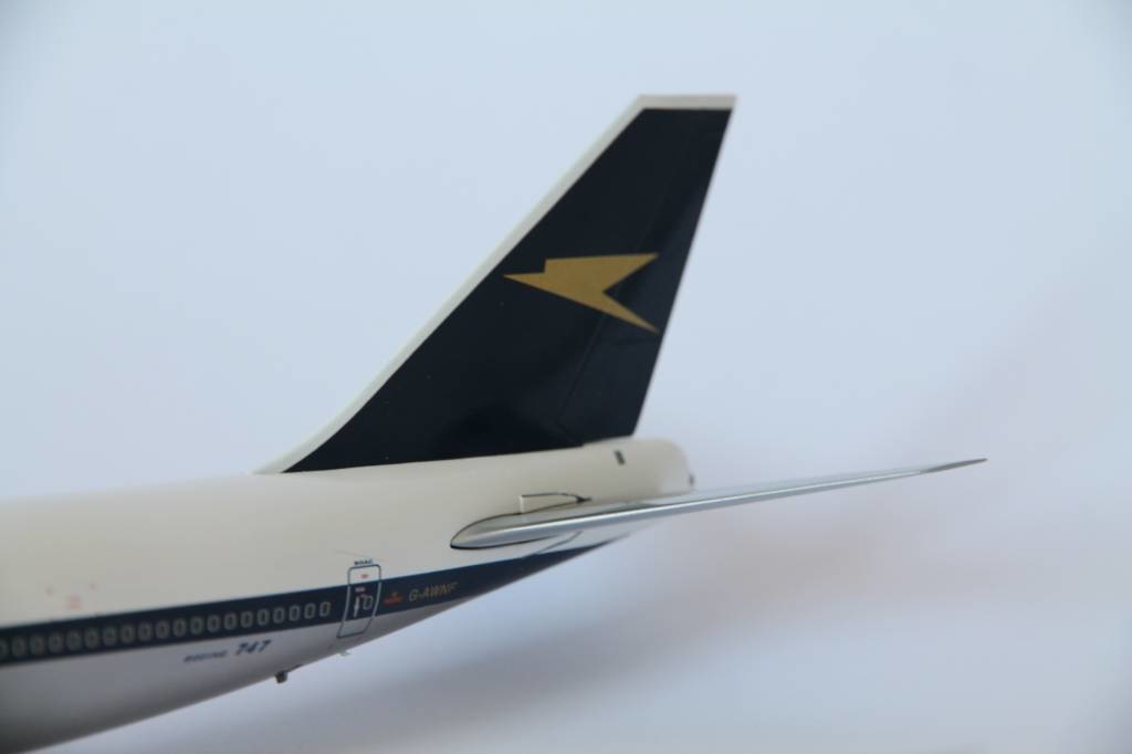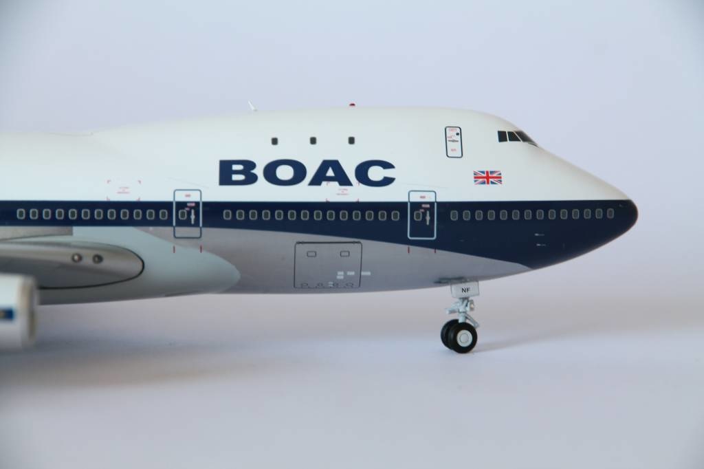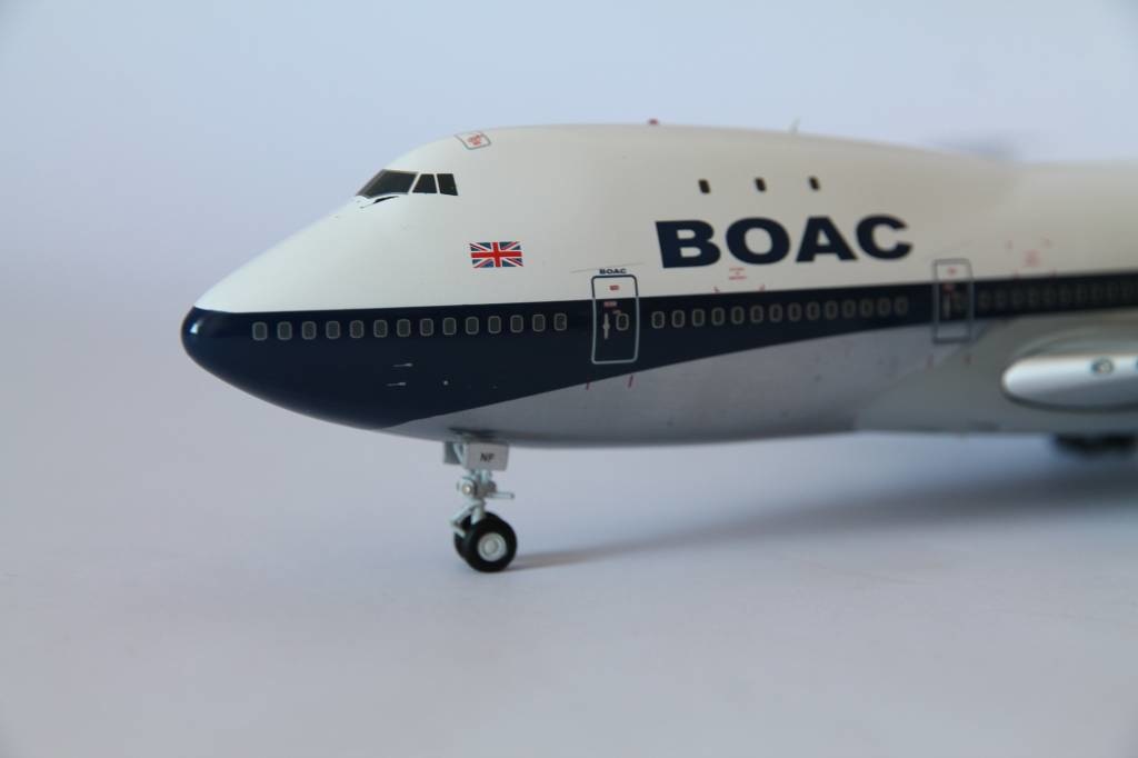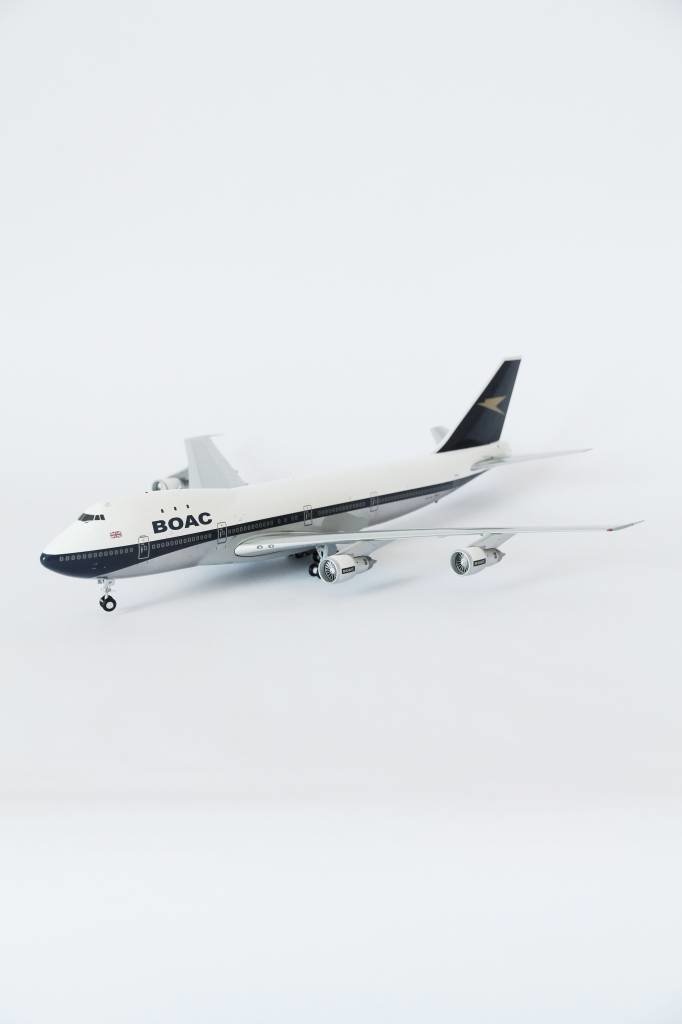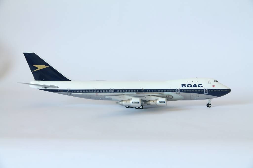 BOAC Boeing 747-100 with polished belly. Contains antennas, steerable nose gear, rolling gears, rubber tyres and "jeweled" beacons. Can be displayed gear up and gear down.
