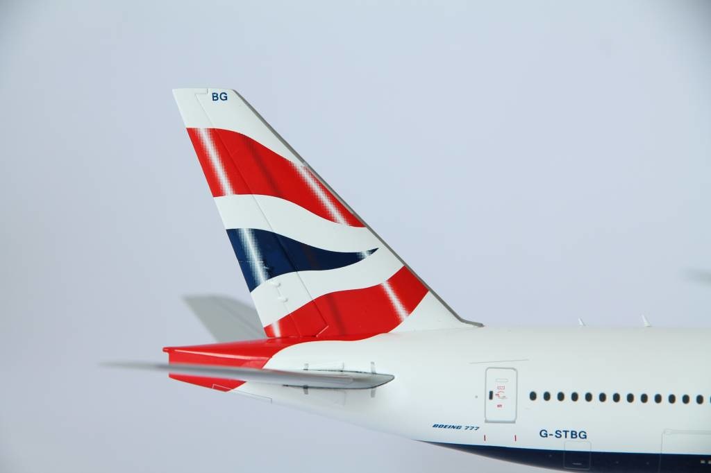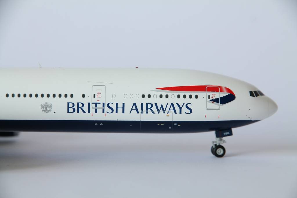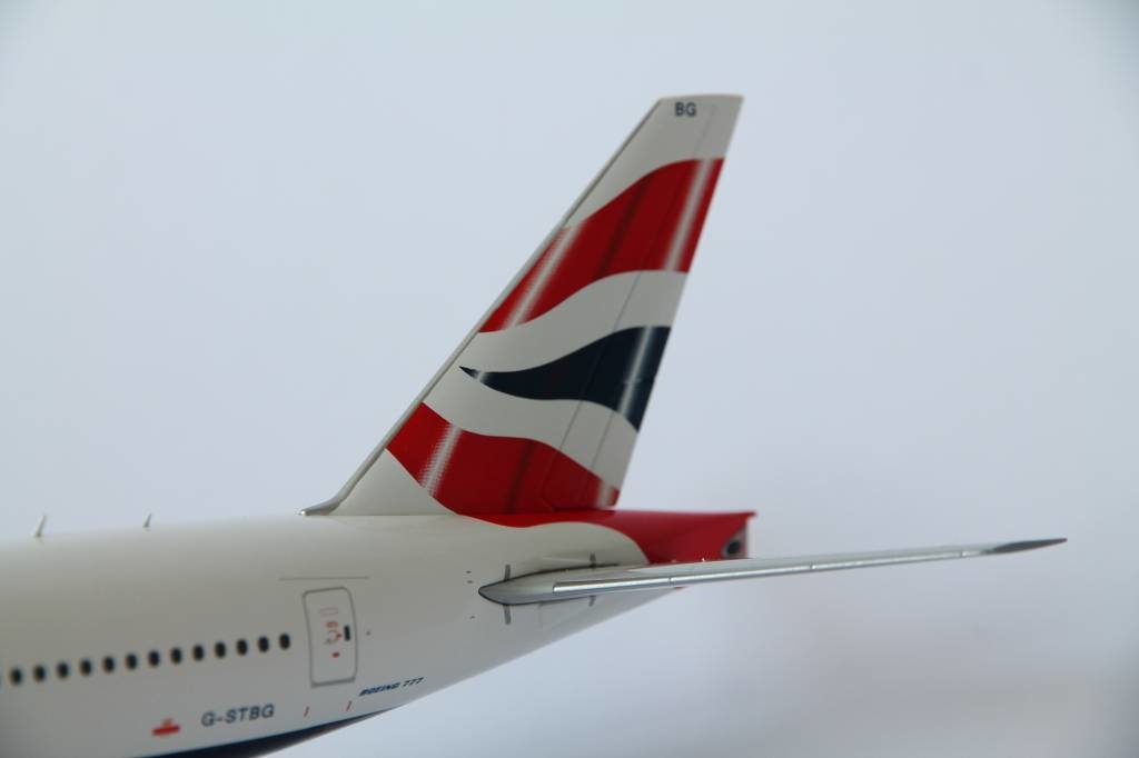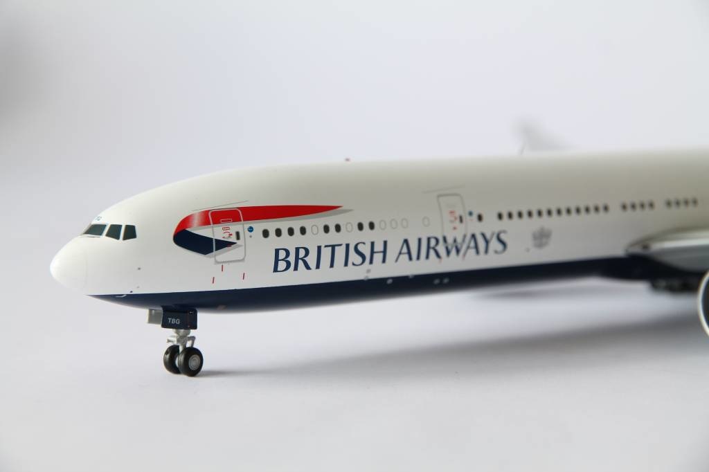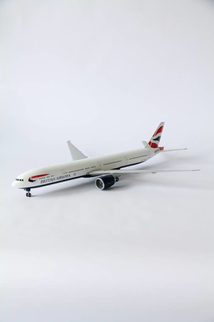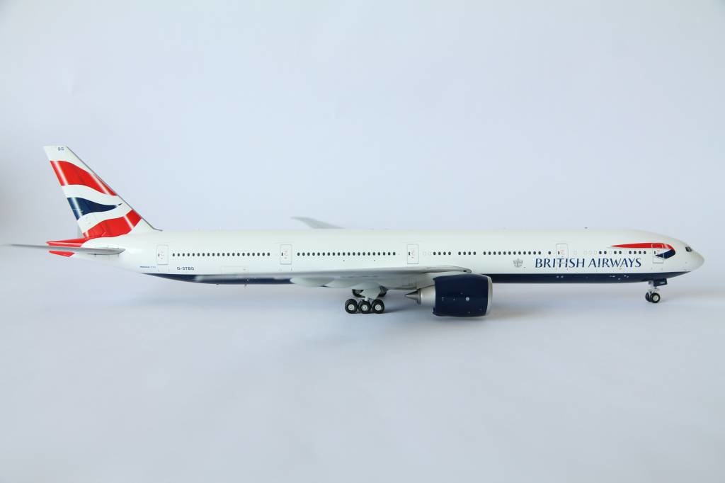 British Airways Boeing 777-300 with registration G-STBG. This model can be displayed gear-up and down. Contains antennas, steerable nose gear, rolling gears, rubber tyres and "jeweled" beacons.