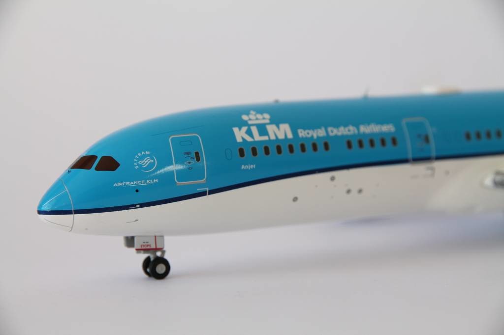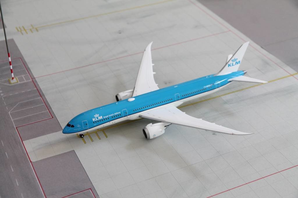 KLM's eerst gebouwde Boeing 787-9, door problemen met de passagiersstoelen werd de PH-BHC als eerst geleverd.