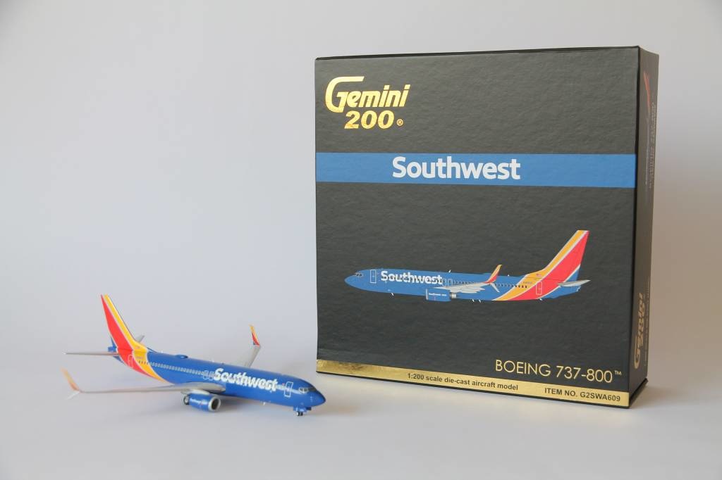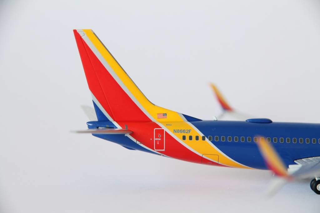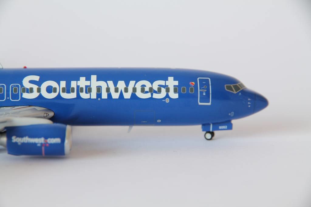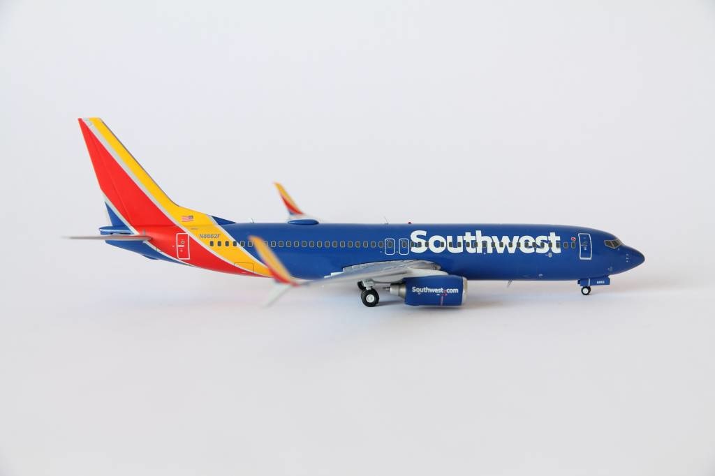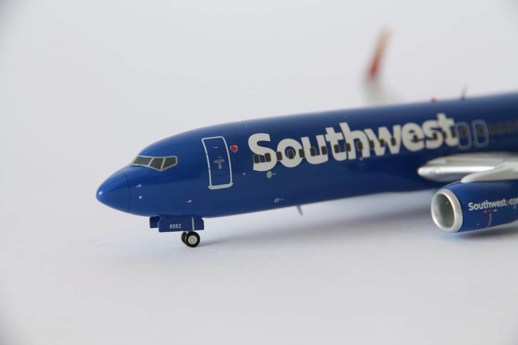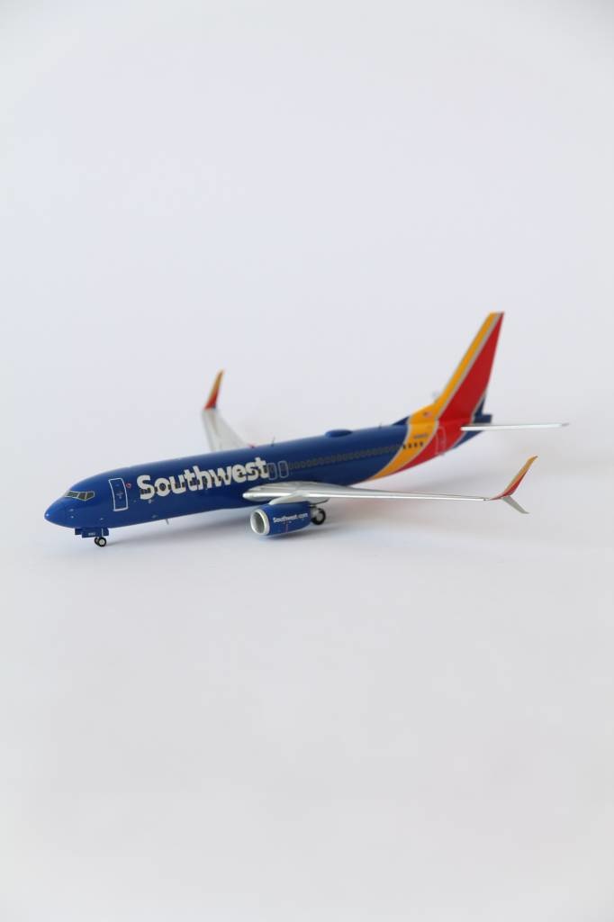 Southwest Airlines Boeing 737-800 with Split Scimitar winglets and Wifi dome. Model can be displayed gear-up and down. Contains antennas, steerable nose gear, rolling gears, rubber tyres and "jeweled" beacons.