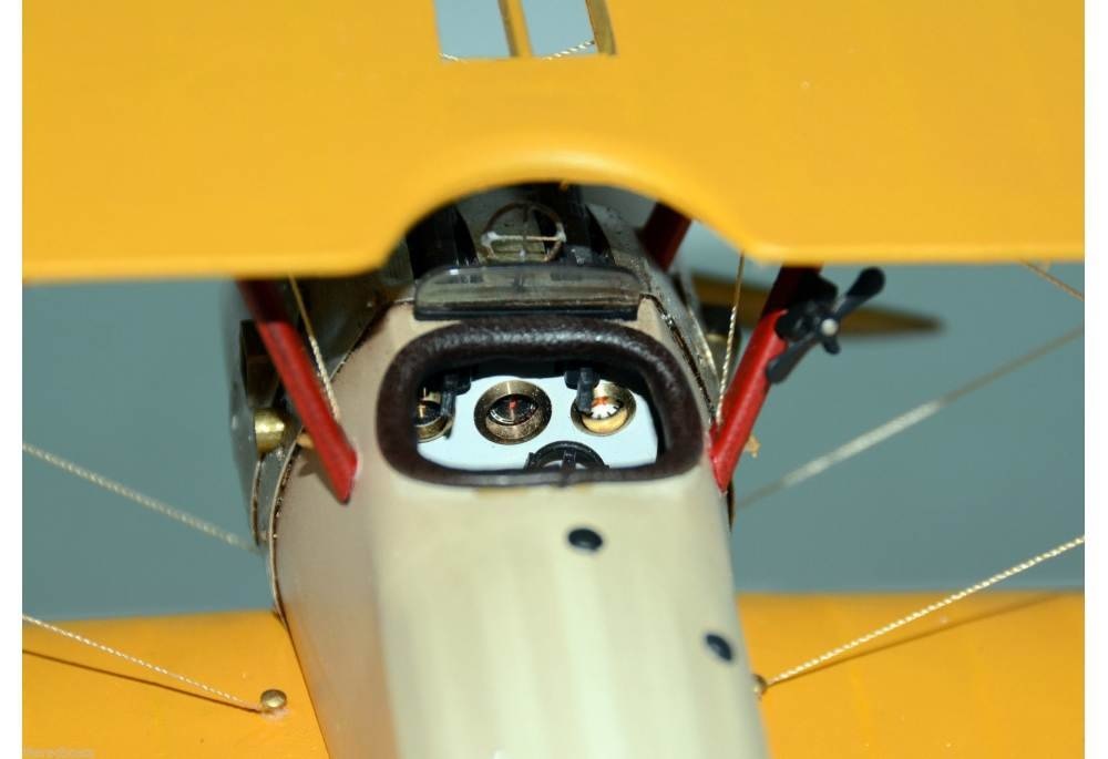 Wooden frame covered with silk fabric. Highly detailed engine, propeller and guns. All cockpit details in miniature. Wing ailerons and tail sections move using intricate guide lines from cockpit. Original spoke wheels like the real plane.